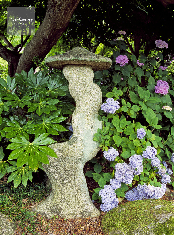 | 作品タイトル | 保和苑の石灯籠とあじさい | モデルリリース | なし | |