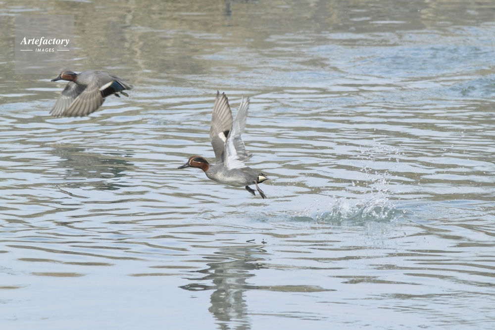 | 作品タイトル | コガモ雄、水面から飛び立つ | モデルリリース | なし | |