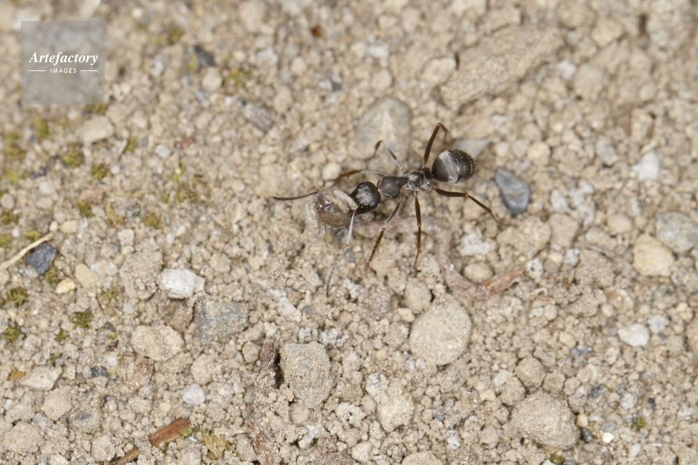 作品タイトル     クロヤマアリ、クモの死骸を運ぶ モデルリリース なし