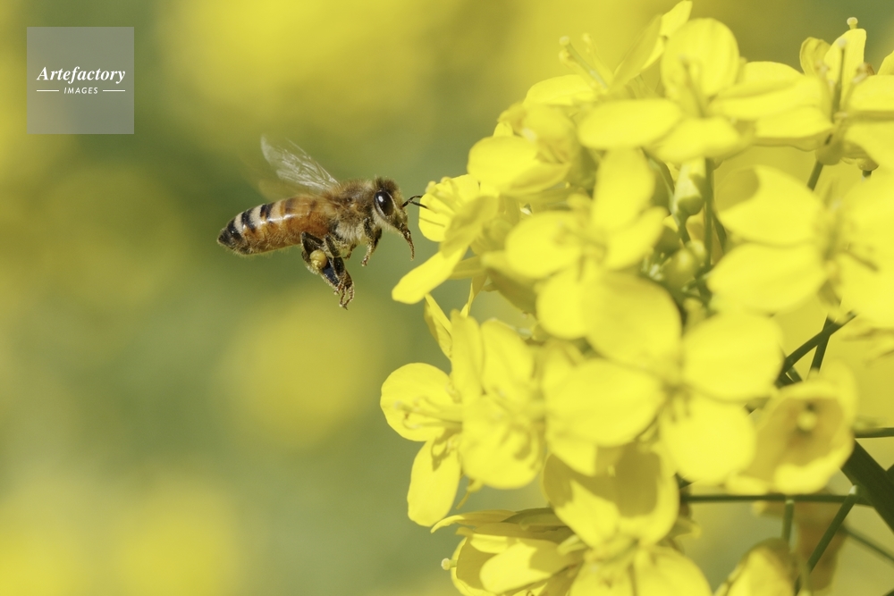 | 作品タイトル | セイヨウミツバチ、、アブラナに訪花 | モデルリリース | なし | |