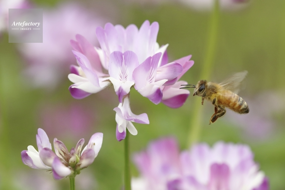 作品タイトル     セイヨウミツバチ、レンゲに訪花 モデルリリース なし