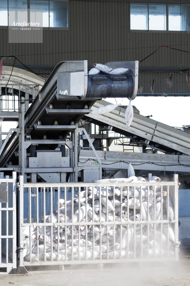 | 作品タイトル | 冷凍のカツオ 漁船からコンテナーボックスに運ばれる | モデルリリース | なし | |