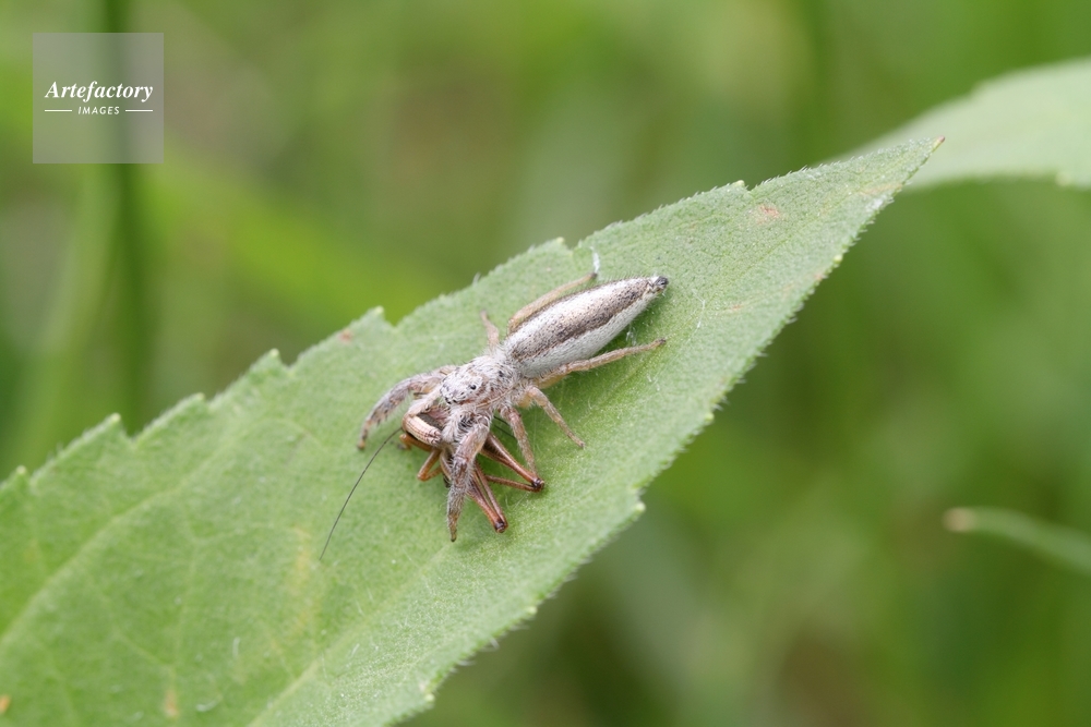 作品タイトル     獲物を捕えたヤハズハエトリ モデルリリース なし
