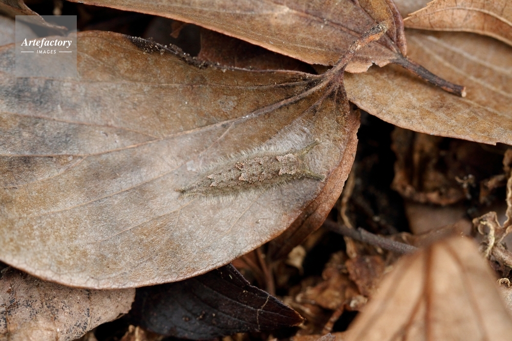 | 作品タイトル | 落葉の下で冬眠するゴマダラチョウの幼虫 | モデルリリース | なし | |