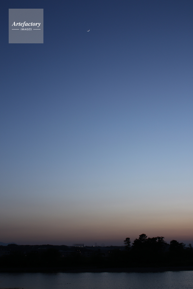| 作品タイトル | 夕方、南東の空に見える月、月齢3.0、夕方、18時26分 | モデルリリース | なし | |
