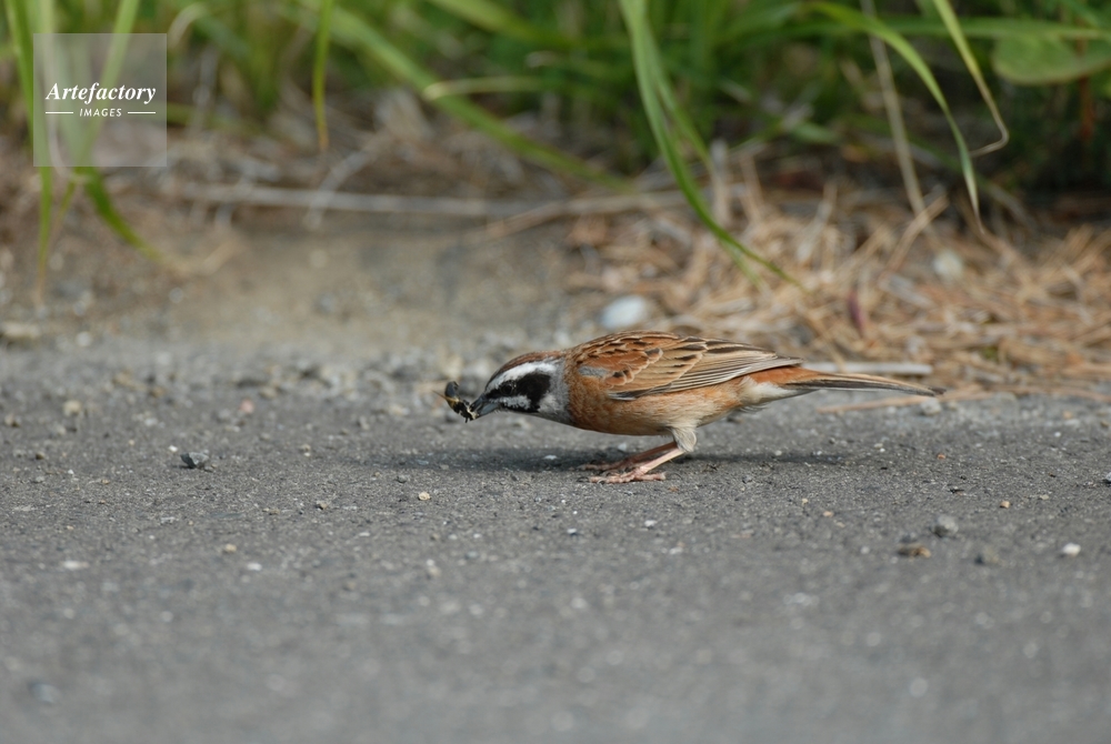 作品タイトル     ホオジロ(オス) エサの虫をつかまえる モデルリリース なし