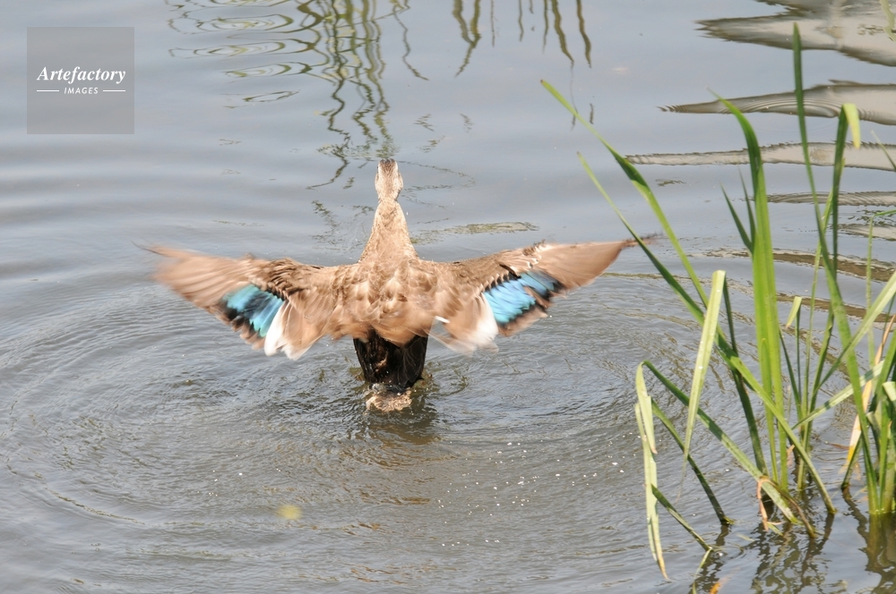 作品タイトル     カルガモ 羽ばたき モデルリリース なし