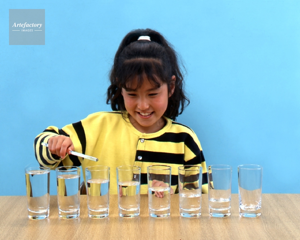 作品タイトル     音階をつけたコップを叩く モデルリリース あり