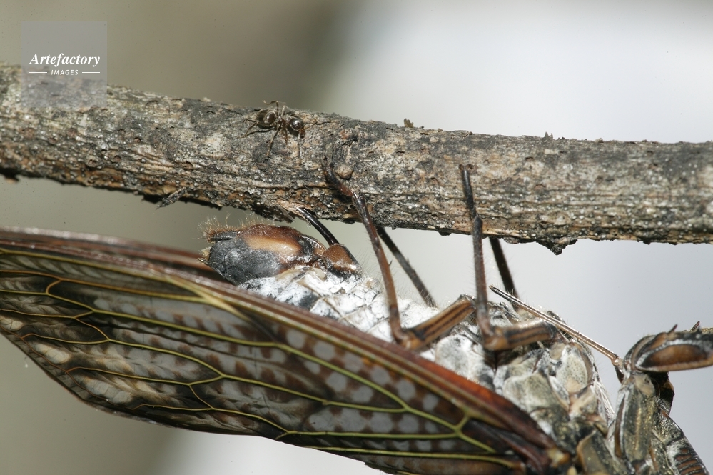 作品タイトル     アブラゼミ産卵 モデルリリース なし