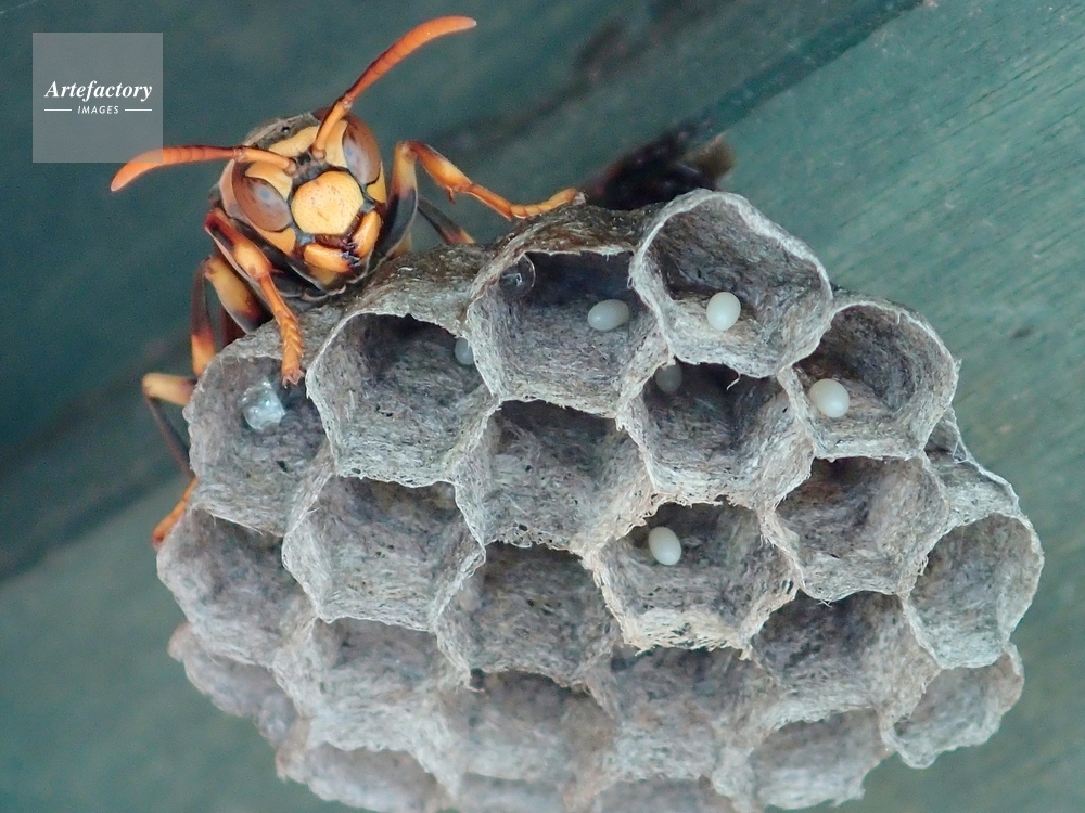 | キャプション | 巣を守る 白いのは卵 液滴は花蜜 スズメバチ科 | 制限事項 | ||