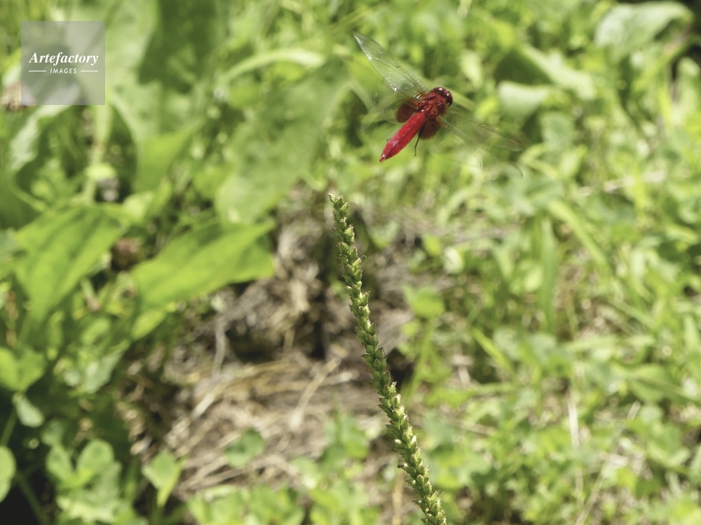 | キャプション | オオバコの花茎に止まろうとする トンボ科 | 制限事項 | ||