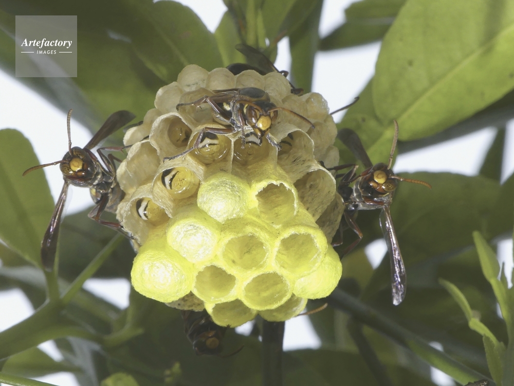| キャプション | 巣を守る成虫 幼虫 繭蓋で覆われた巣室 スズメバチ科 | 制限事項 | ||