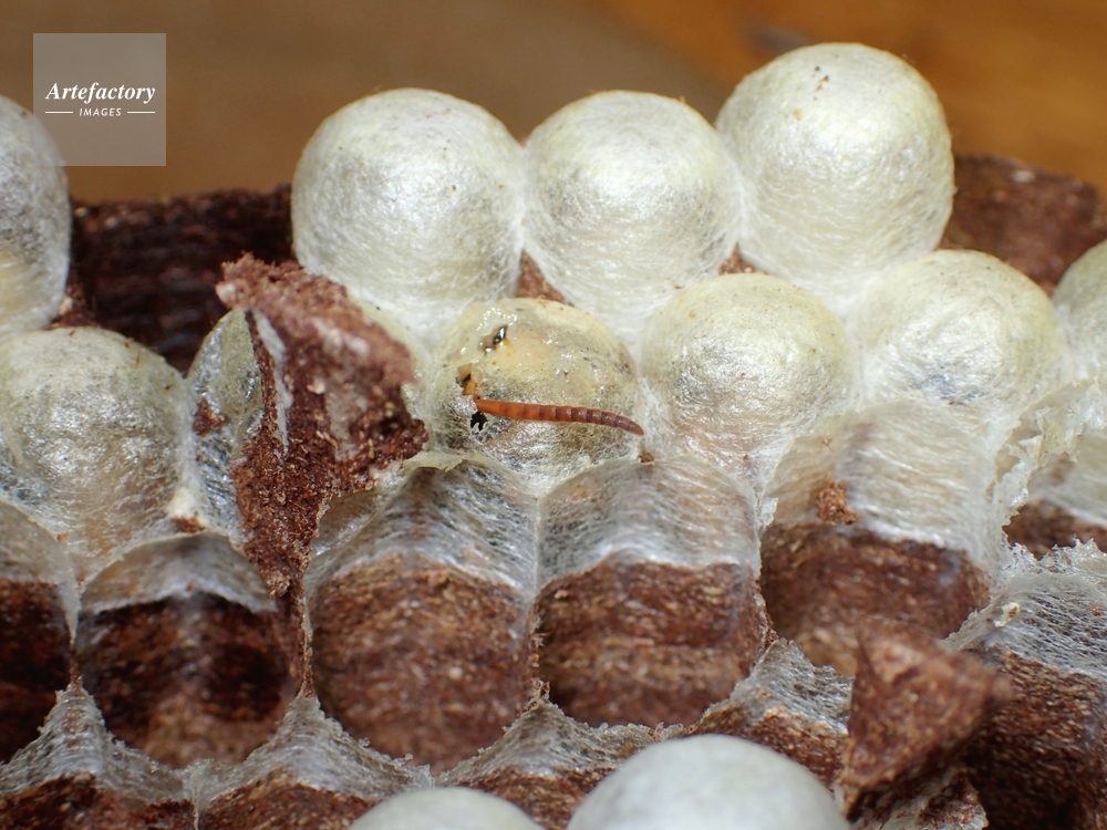 | キャプション | 繭蓋を食い破る成虫 スズメバチ科 | 制限事項 | ||