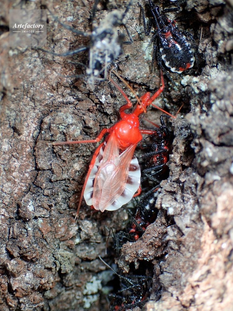 | キャプション | 後方は桜の幹にいる越冬後幼虫集団 サシガメ科 | 制限事項 | ||