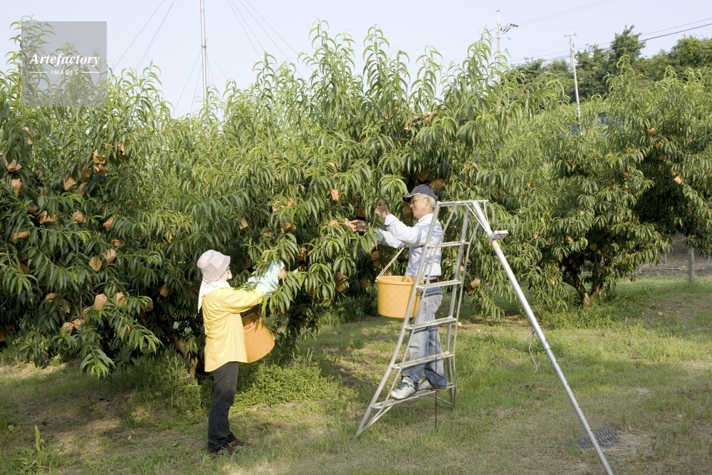 作品タイトル     白桃の収穫 モデルリリース なし