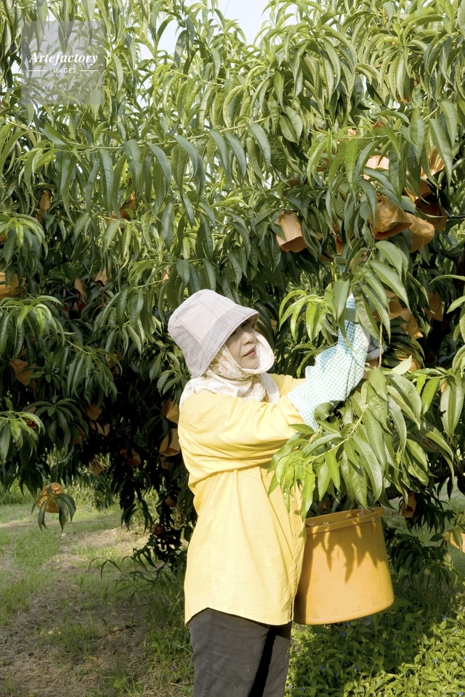 作品タイトル     白桃の収穫 モデルリリース なし