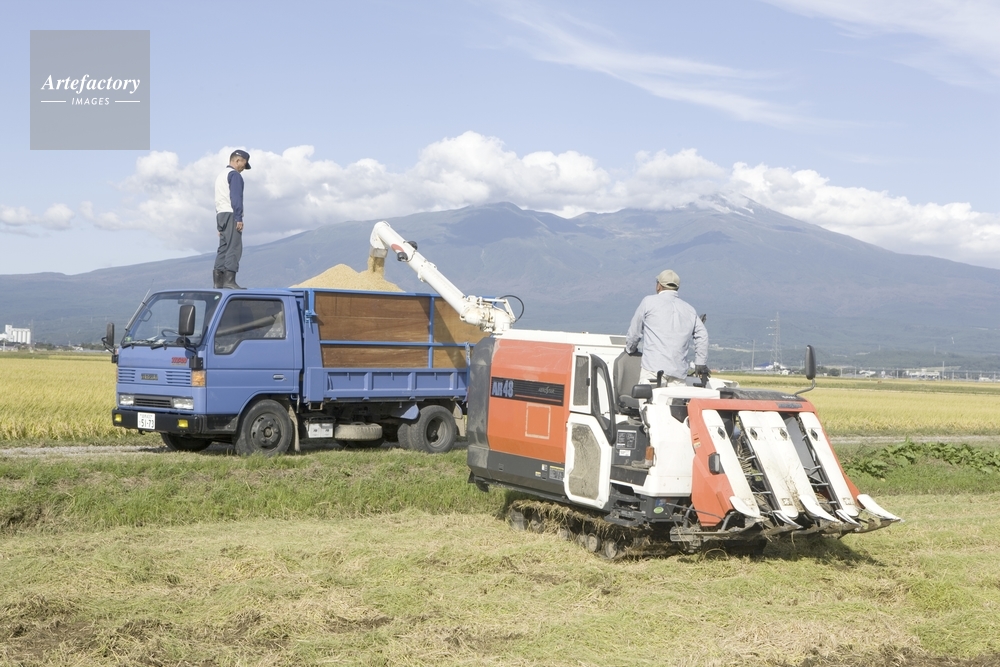 | 作品タイトル | 庄内平野の稲刈り 後方鳥海山 | モデルリリース | なし | |
