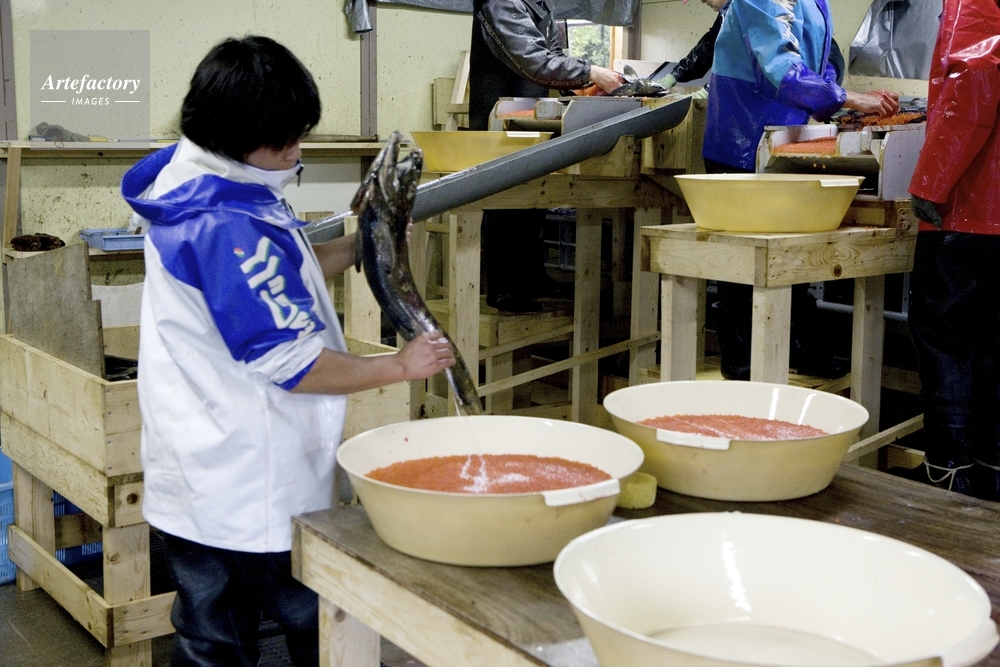 | 作品タイトル | サケの養殖・採卵後卵に精子をかける | モデルリリース | なし | |