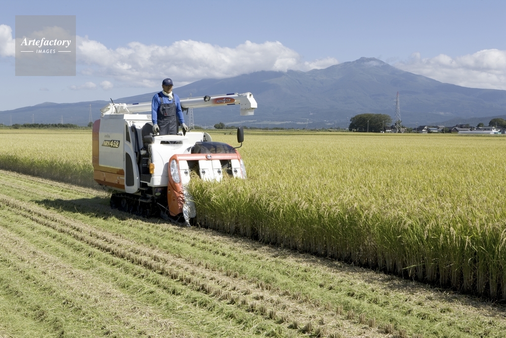 | 作品タイトル | 庄内平野(つや姫)の稲刈り 後方鳥海山 | モデルリリース | なし | |