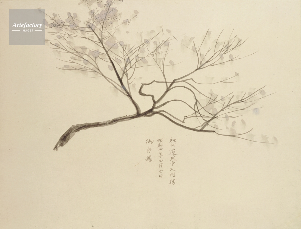 | キャプション | どうじょうじいりあいざくら(しゃせい3),1929(昭和4),紙本・彩色・額(1面) | 制限事項 | ||