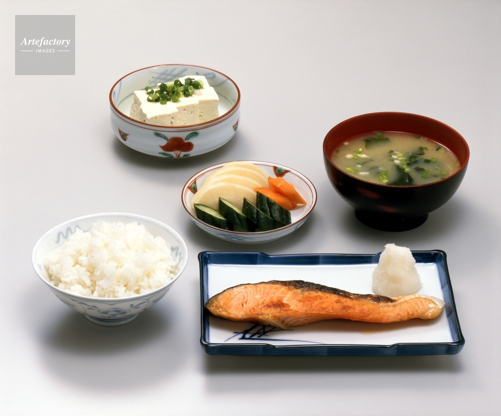 | 作品タイトル | 鮭の塩焼き定食(冷奴とおしんこ付き) | モデルリリース | なし | |