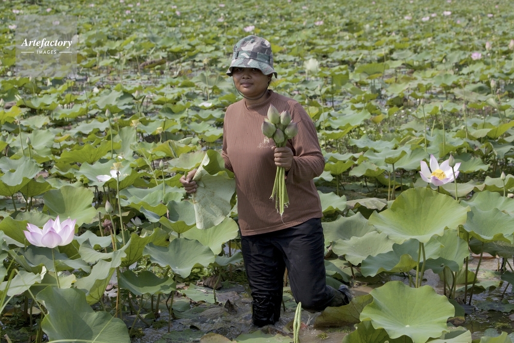 | 作品タイトル | トンレサップ湖近くのハス畑の花を採る農家 | モデルリリース | なし | |