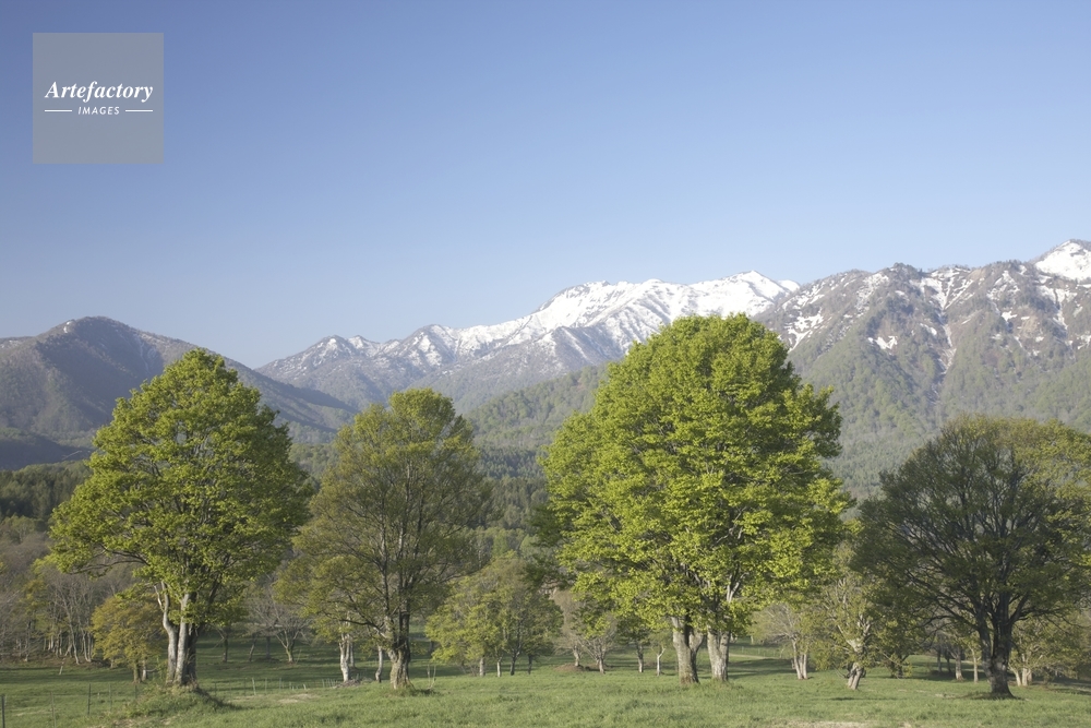 | 作品タイトル | 新緑の木と残雪の山 笹ヶ峰高原 | モデルリリース | なし | |