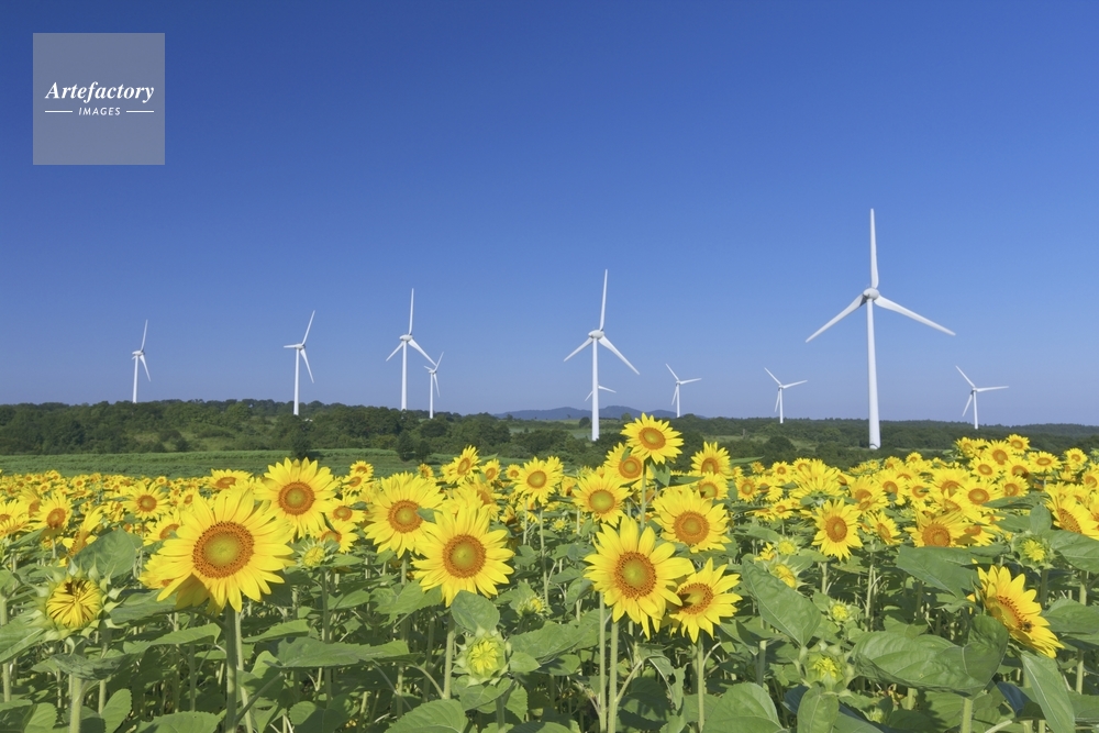 | 作品タイトル | ヒマワリの花畑と風力発電 | モデルリリース | なし | |
