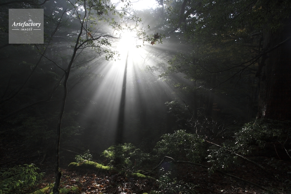 作品タイトル     光射す花山の森 モデルリリース なし