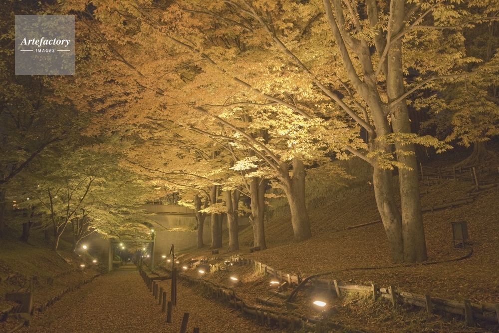 | 作品タイトル | 黄葉のケヤキ並木ライトアップ 上田城跡 | モデルリリース | なし | |