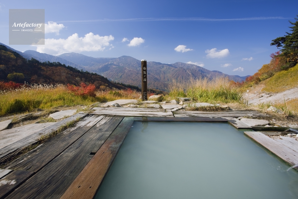 | 作品タイトル | 秋の蓮華温泉 仙気ノ湯より北アルプス | モデルリリース | なし | |
