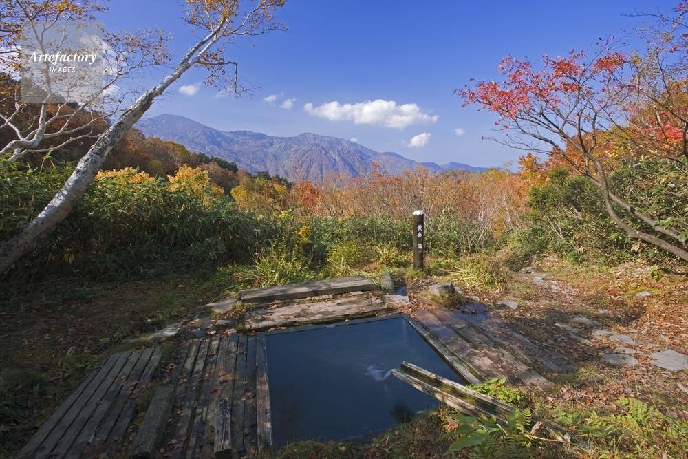 | 作品タイトル | 秋の蓮華温泉 黄金湯より北アルプス | モデルリリース | なし | |