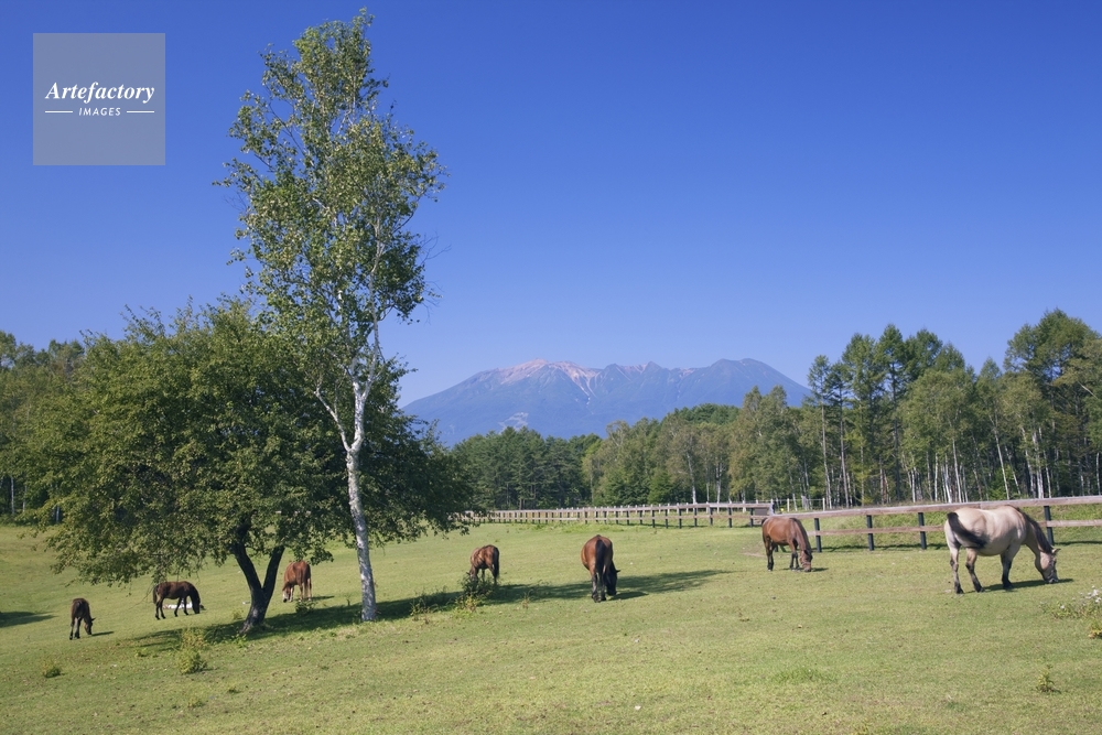 | 作品タイトル | 開田高原 木曽馬の里より御岳山 | モデルリリース | なし | |