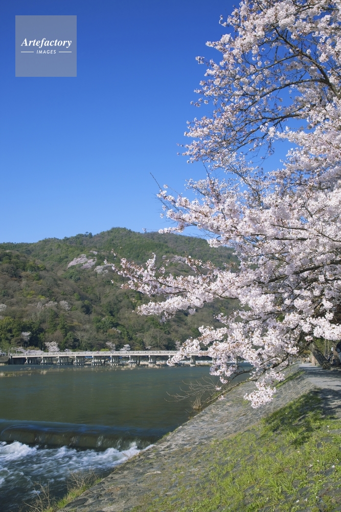 作品タイトル     桜咲く嵐山 渡月橋 モデルリリース なし