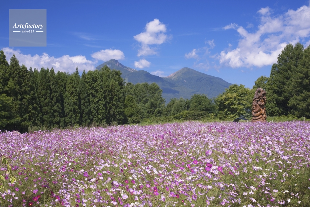 | 作品タイトル | コスモスと磐梯山 会津富士 | モデルリリース | なし | |