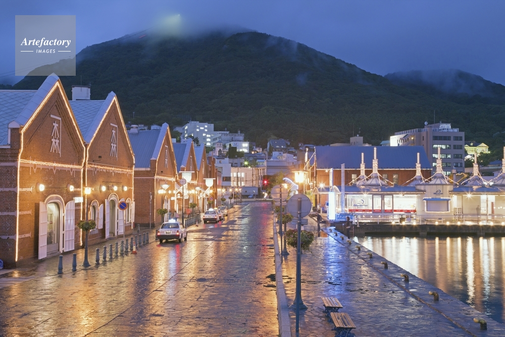 作品タイトル     金森赤レンガ倉庫と函館山夕景 モデルリリース なし