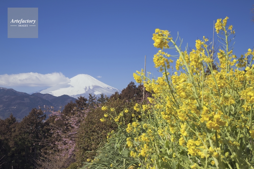 作品タイトル     菜の花と河津桜咲くあぐりパークより富士山 モデルリリース なし