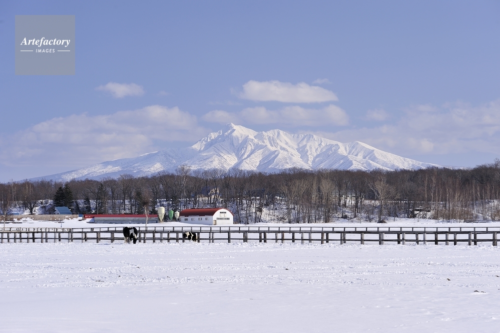 作品タイトル     斜里岳と冬の牧場 モデルリリース なし