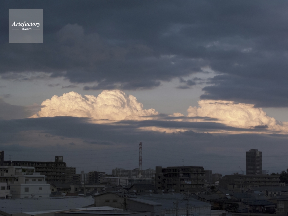 | 作品タイトル | 乱層雲と夕映の積乱雲と街 | モデルリリース | なし | |
