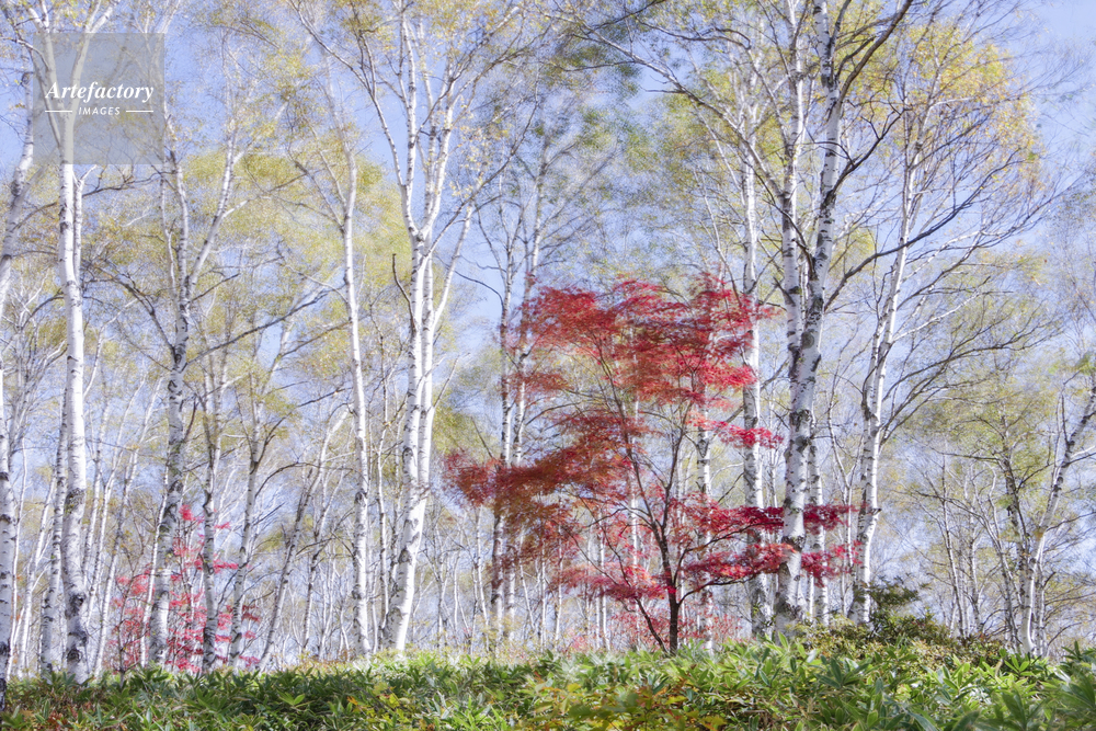 | 作品タイトル | 秋の白樺の森の風に揺れる紅葉 | モデルリリース | なし | |
