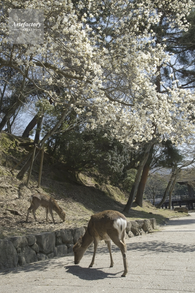| 作品タイトル | コブシ咲く奈良公園と鹿 | モデルリリース | なし | |