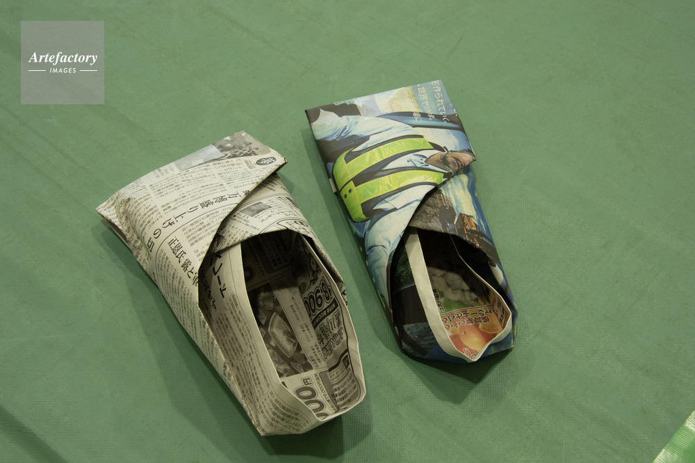 | 作品タイトル | 災害訓練での新聞紙で作ったスリッパ | モデルリリース | なし | |
