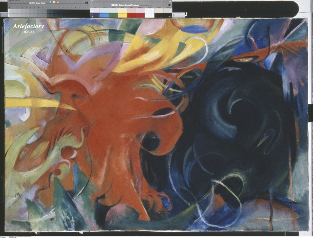 | キャプション | Photo by BStGS ,GemAlde / ol auf Leinwand (o.J.) von,,BildmaB 91 x 131,5 cm,Inventar-Nr.: 10972,Deutscher Maler, Mitglied der Kunstlergemeinschaft Der blaue Reiter,Systematik:Personen / Kunstler / Marc / Werke / GemAlde | 制限事項 | ||