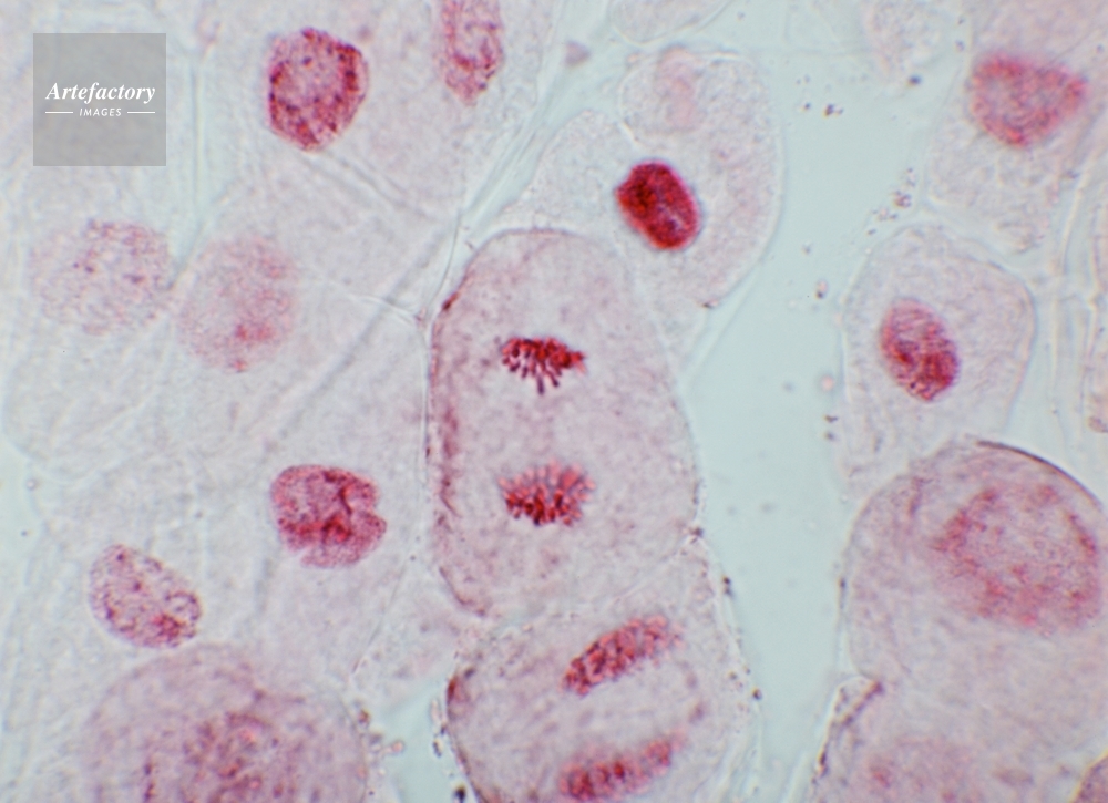 | 作品タイトル | オオカナダモ根の先端細胞分裂・後期 (酢酸オルセイン染色) | モデルリリース | なし | |