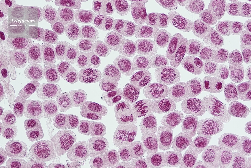 | キャプション | 体細胞分裂のいろいろな時期 酢酸オルセイン染色、長辺35mmの場合 79.5倍 | 制限事項 | ||