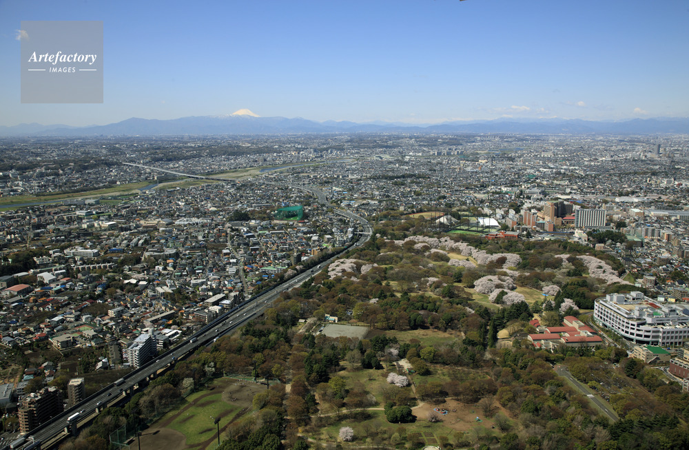 | 作品タイトル | 桜満開の砧公園と東名道より富士山 | モデルリリース | なし | |