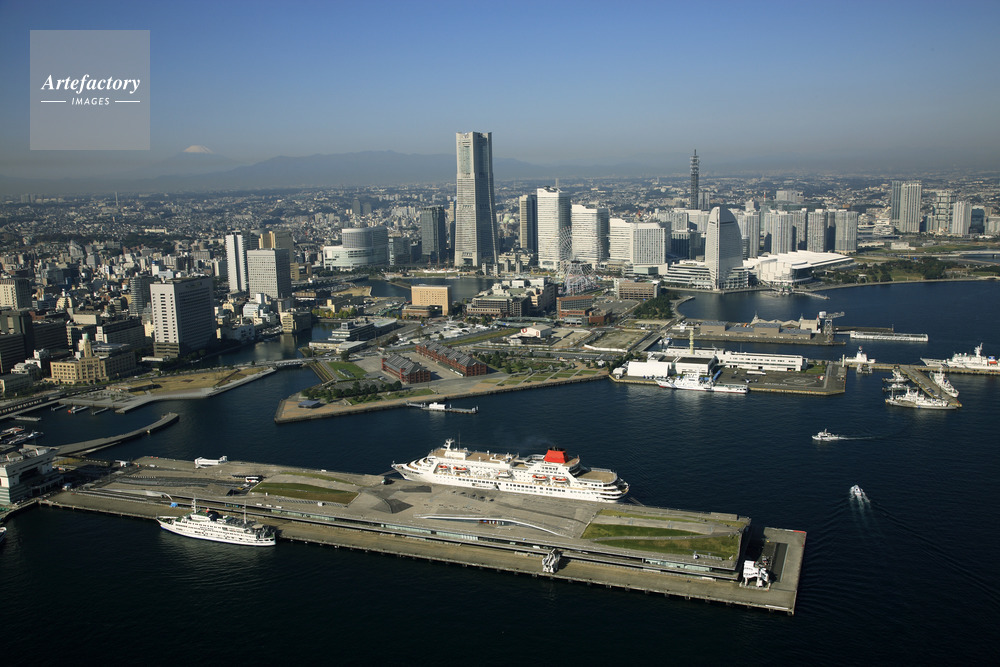 | 作品タイトル | 客船と横浜港大桟橋よりみなとみらい地区と富士山 | モデルリリース | なし | |