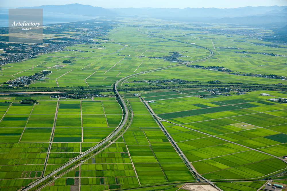 | 作品タイトル | 越後平野(加治川より中条方面)中央は日本海沿岸東北自動車道 | モデルリリース | なし | |