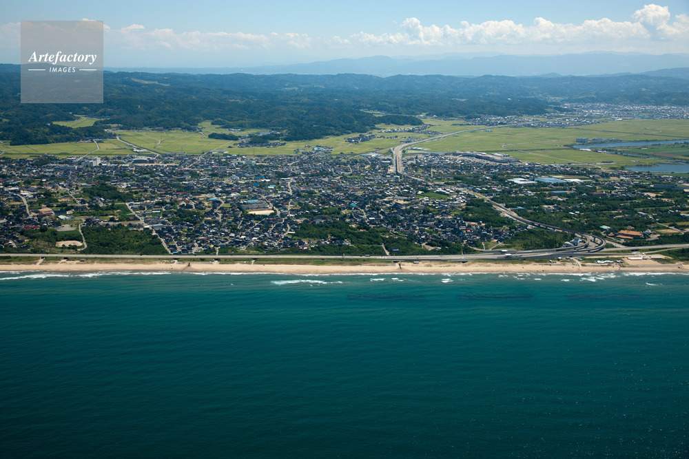 | 作品タイトル | 宇野気駅と街並みと能登有料道路,白尾IC付近 | モデルリリース | なし | |
