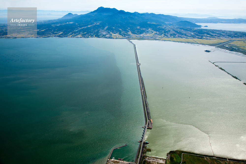 | 作品タイトル | 有明海の諫早干拓事業の堤防と水門より普賢岳 | モデルリリース | なし | |